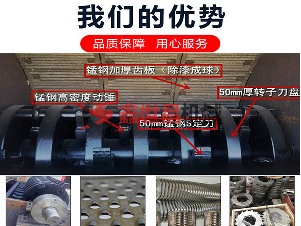 易拉罐破碎機主機殼體采用特厚鋼板制造,內(nèi)襯為高錳鑄鋼件以起到保護(hù)外機體的作用,在主機轉(zhuǎn)子部位該機采用盤式緊固旋轉(zhuǎn)機構(gòu),在轉(zhuǎn)子上有若干個鋼盤安裝于水平軸上,軸向懸有若干個錘頭用于對物料進(jìn)行擊打破碎,主軸用滾珠軸承支承,循環(huán)油強制潤滑冷卻,并裝有溫度傳感器以保證設(shè)備高速穩(wěn)定運行,通過以上機殼與主軸的配合來完成易拉罐的破碎作業(yè)。